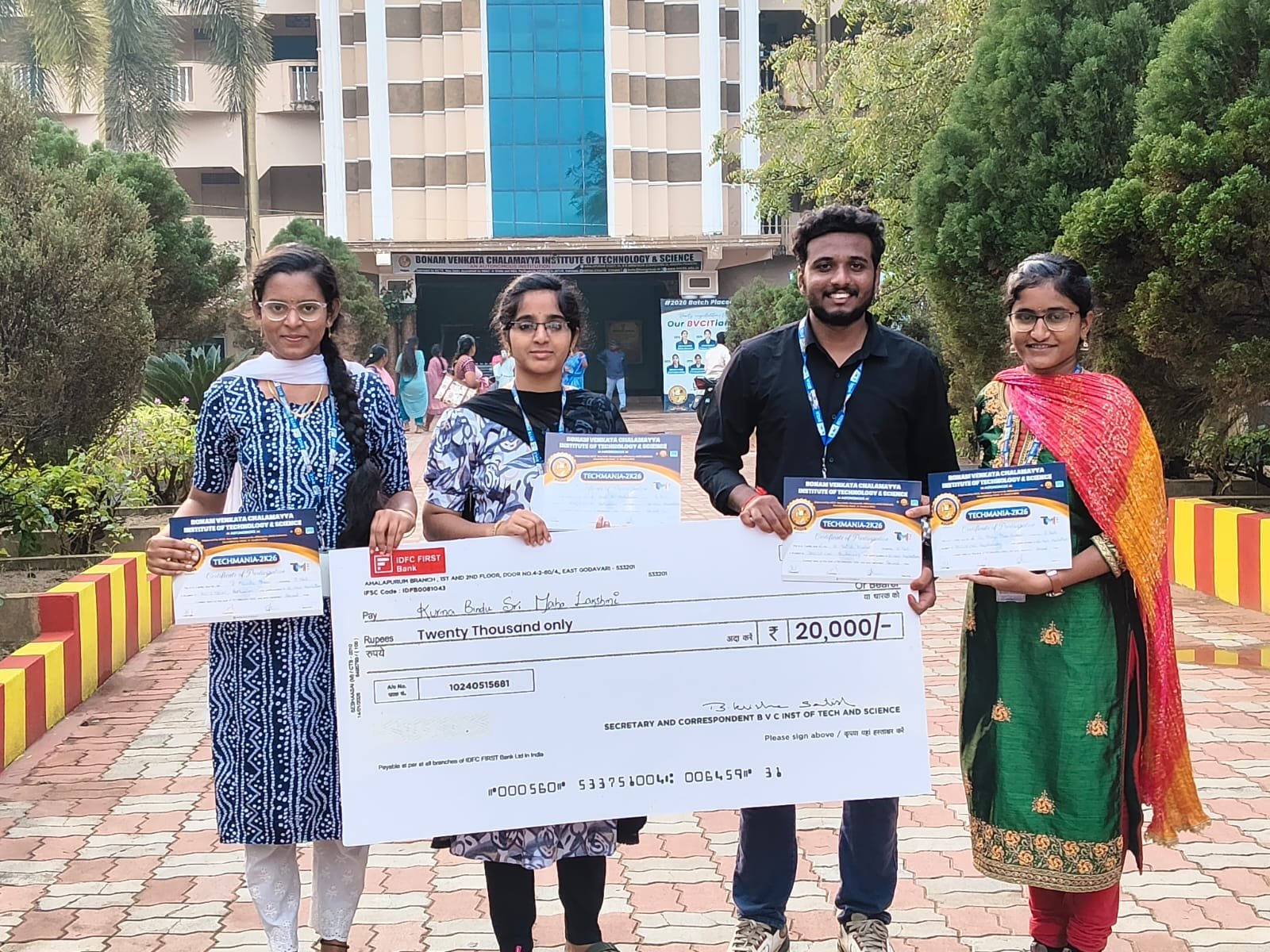 CSE – AI & DS students secured 2nd place in the TECHMANIA-2026 National Level Fusion Hackathon at BVCITS, Batlapalem, and were awarded a cash prize of ₹20,000