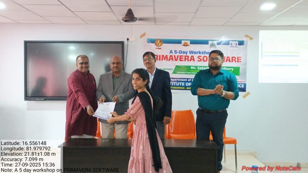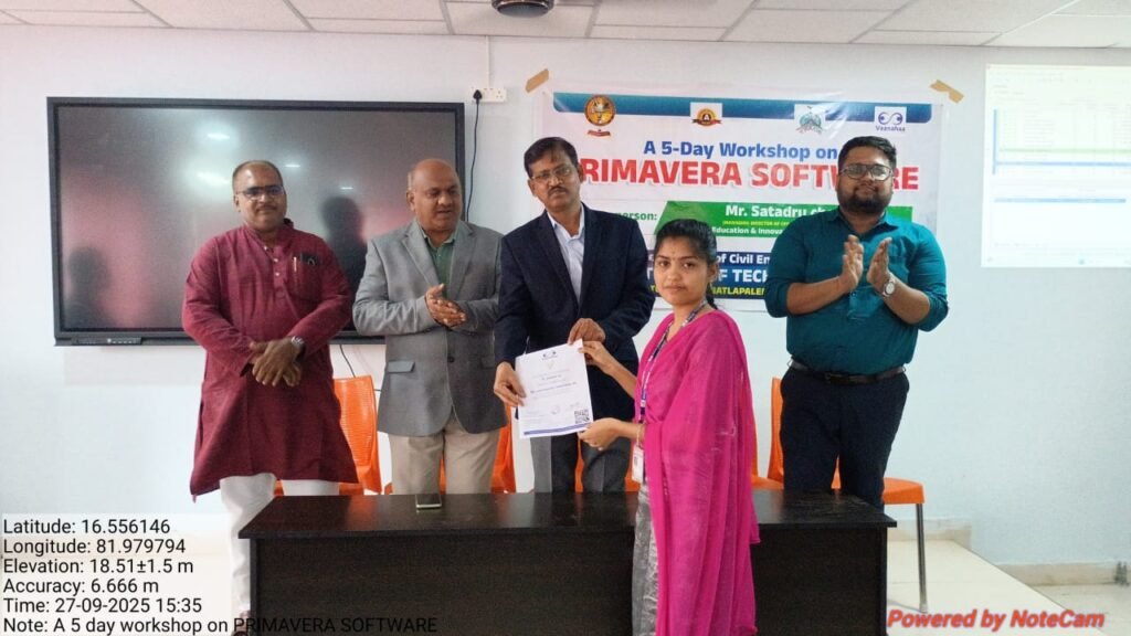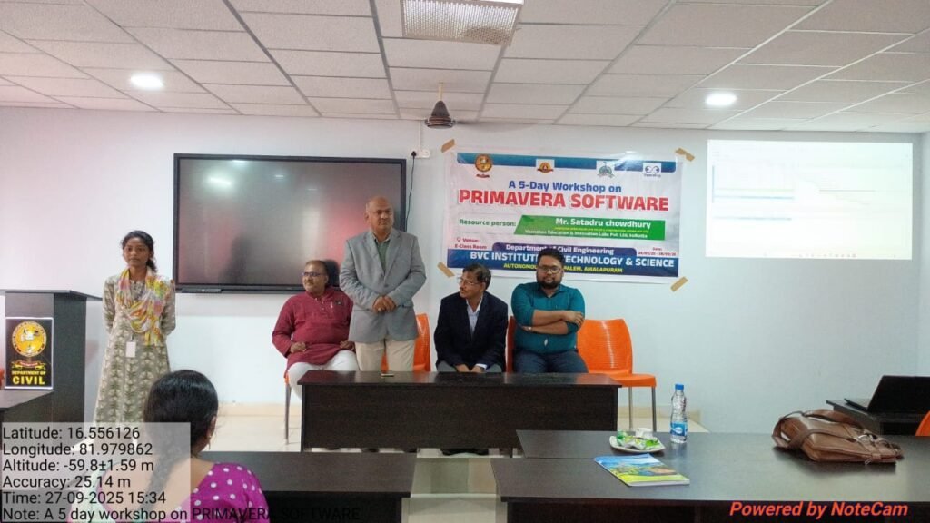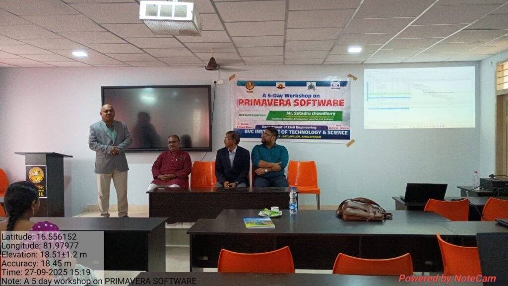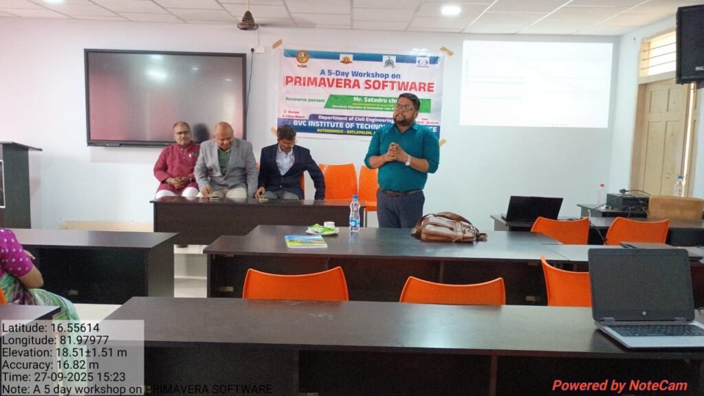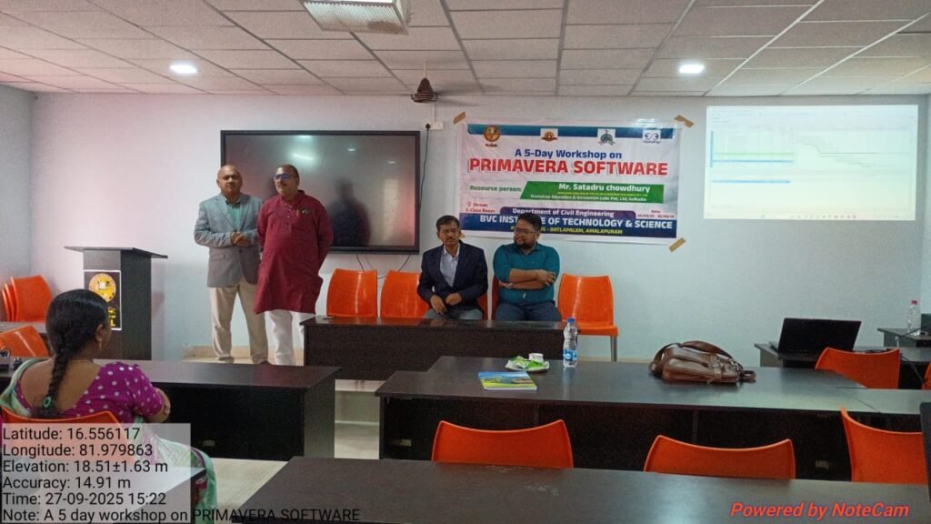 Dept. of Civil Engineering is organising a five day workshop on “A 5 day workshop on PRIMAVERA SOFTWARE” from 24 Sep to 28th sep 2025